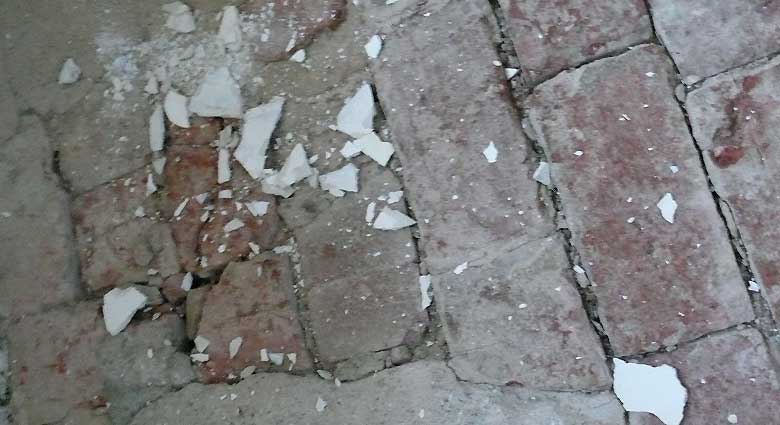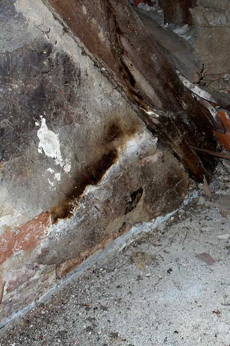 Es war hier, wo das Dach offen lag als ich kam. Hier regnete es herein. In Lehmwände und Holzgebälk, Was die Kinder taten, um reinzu kommen. Erwünscht. Bei denen davor alles weg. Nach der Wende wofür es Geld gab, Abrissprämen in der Höhe des Neubaus. Dieses Loch im Dach zu reparieren was die erste Tat am Haus. Noch bevor es mein Eigentum wieder wurde. Warum das Bild in Demmin nicht entdeckt werden, erscheinen durfte. Ist eine andere Geschichte.