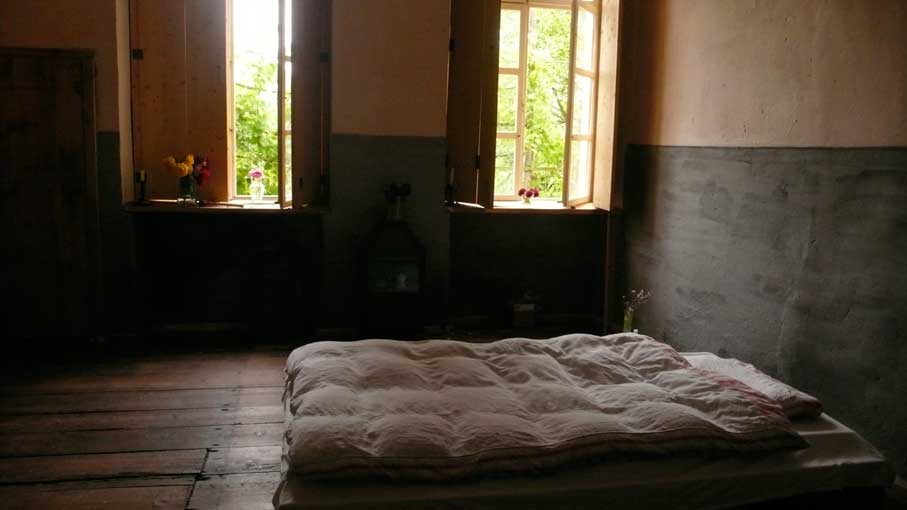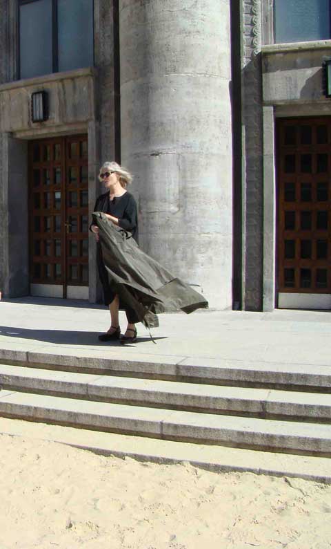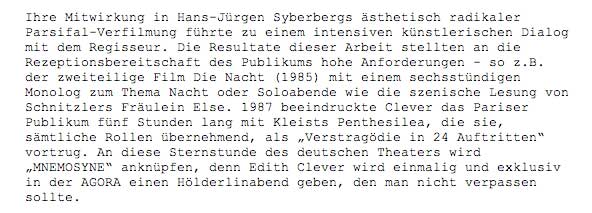 am Tage, an dem sie noch einmal wagt, den hohen Ton am fremden Ort, den ungeheuren Dichter der deutschen Sprache, allein zu treffen. Selbst.