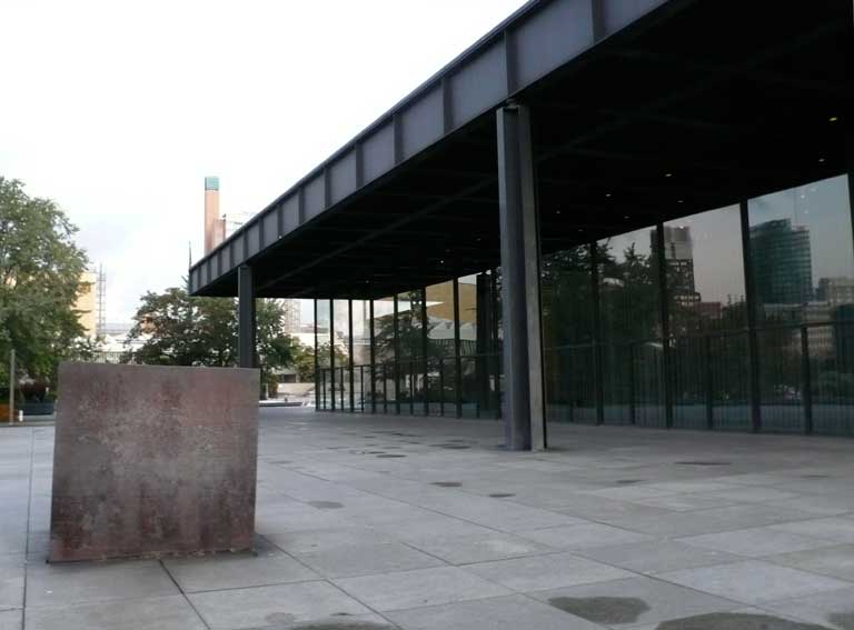 Mies von der Rohe in Berlin nach dem Kriege west, heute ergänzend zur Museeumsinsel, den histotischen Bauten.