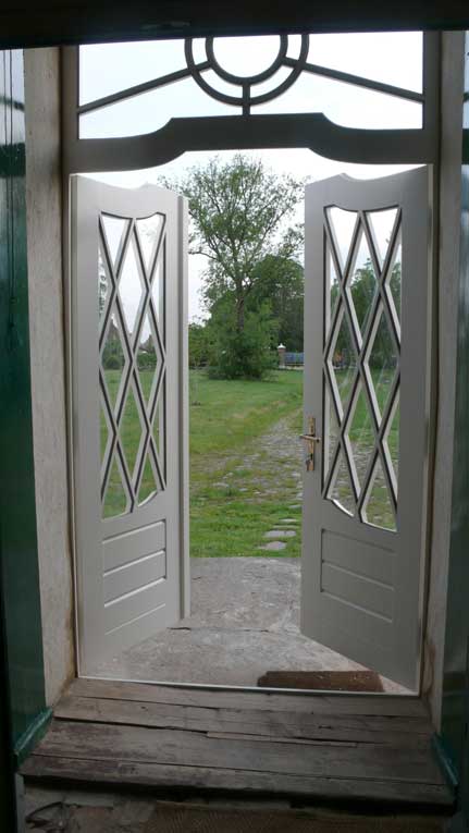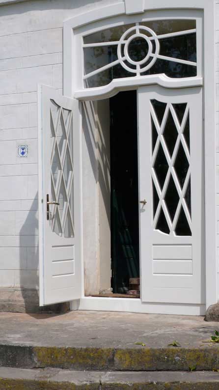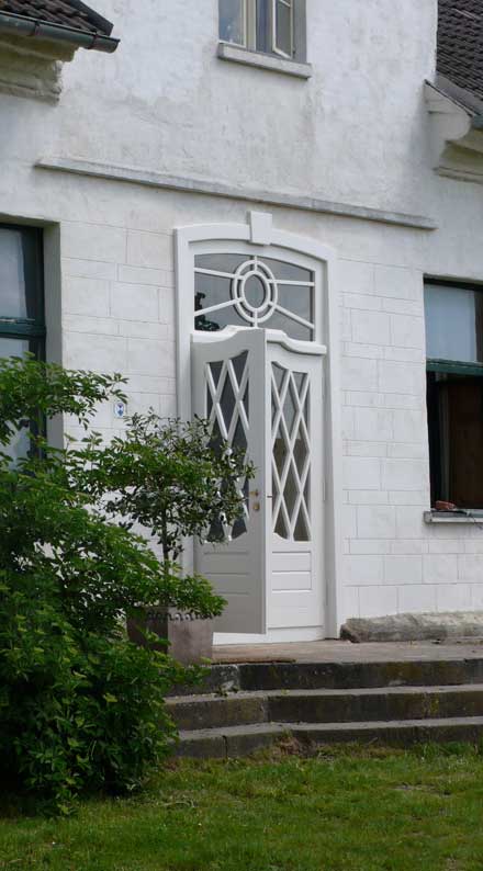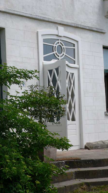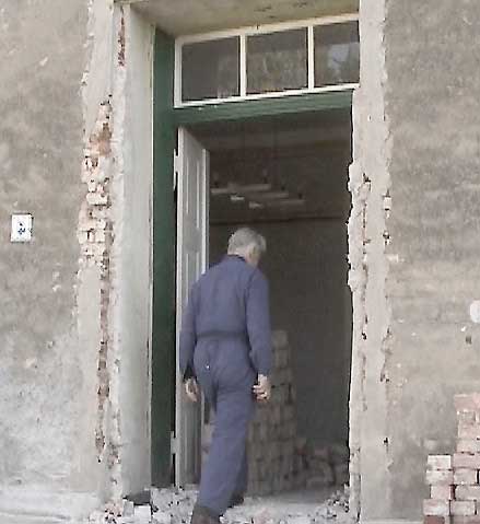 Die vordere Tür ist nun also wieder da. Sorgfätig gefasst nach den alten Bildern. Wie im Film, den ich immer abgelehnt, als ich herkam, über die Nossendorf-Zeit als Ende einer Epoche. IUnd die Geschichte der Menschen. Filmbauten nun doch, aber ganz anderer Zuschauer und Koordinaten.