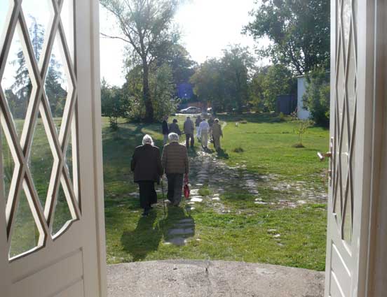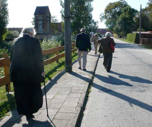 Zur Kirche diesmal auf der Strasse wie die Ämter und der Bürgermeister und Kirchenleute es gut finden.