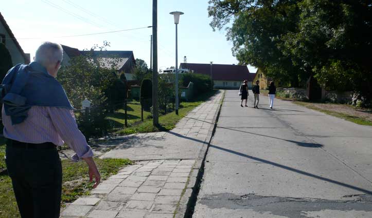 und wieder die Strasse aus Beton und ohne Bürgersteig. Es sind nur 1Personen. Aber wehe wenn es dann 100 werden nach den Konzerten in der Kirche mit nach Einladung ins Haus