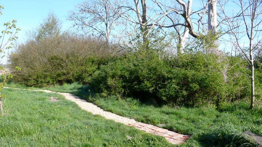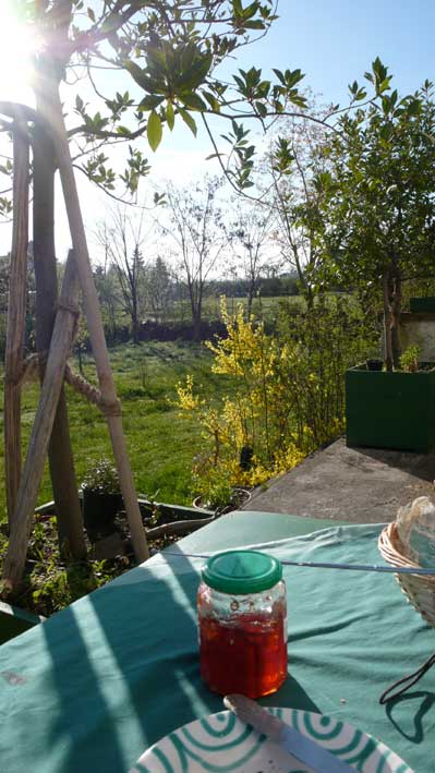 erster Sonnentag zum draussen frühstücken, aber trocken. Und auch nach rechts alles grün, wo sonst Beton war und Ödnis.