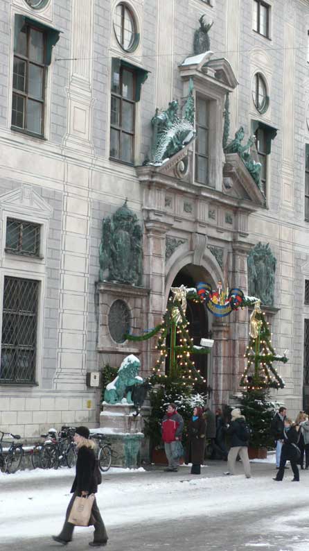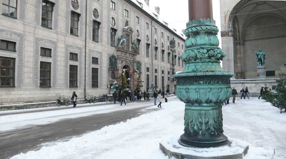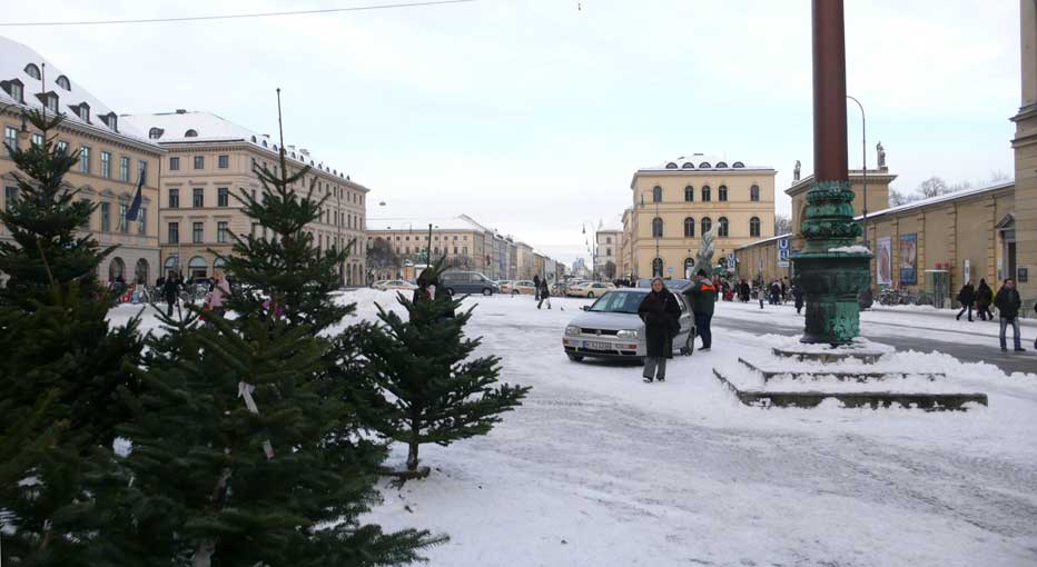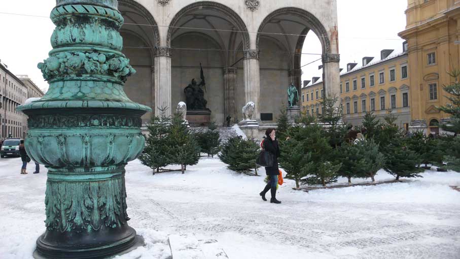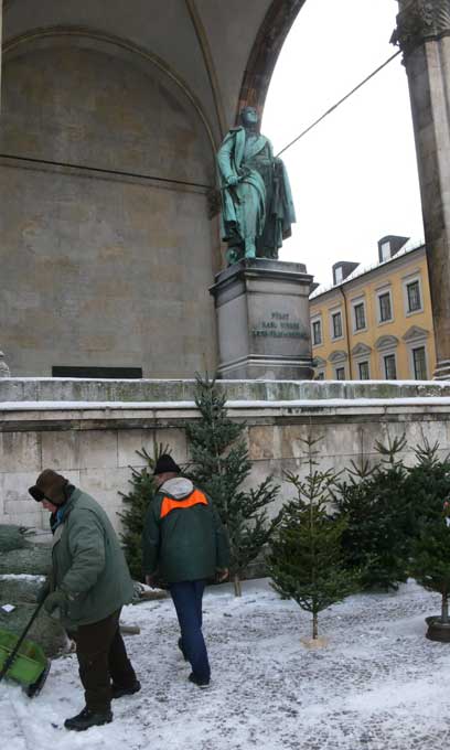 Christbaum abholen Feldherrnhalle, vor der Theatinerkirche