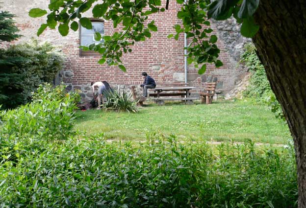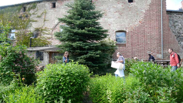 mitten im Wald das, was übrig blieb. Wiederentstanden. Und die Verluste. Der ganze hist. Block. zugunsten des Lebens im neuentstandenen Anbaus aus dem 19.Jahrhundert.