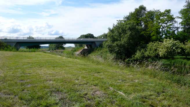 Die Tollense mit Badestelle für einen Ort, ganz still, was sie N. an der Trebel nicht erlauben. Umweltämter. Aber daneben die Aurobahn.