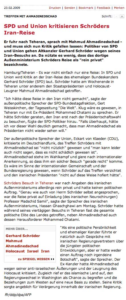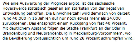 Nach einlaufenden Meldungen drängen auch die CDU-Chargen der hinteren Reihen auf baldige Entscheidung in Sachen Besetzung des Stiftungsrats für Vertreibungen und verlorene Gebiete. Als ob dann die jetzt vorgesehene Kandidatin und verdienstvolle Gründerin der vorgesehenen Einrichtung damit endlich wegkäme. Sebstverständlich muss sie auch gerade wegen der Einsprüche von ausserhalb bleiben. Es wird das Ansehen Deutschlands auch in Polen davon anhängen, ob wir einknicken. Ist Waschau und Danzig und Stettin nicht genug für alle Zeiten. Und sie habens noch lange nicht verdaut, was zu gross ist für ihren Magen. Das Gebiet Polens heute entspricht der jetztigen Grösse Deutschlands bei halb soviel Einwohnern in Polen. Eine "Westverschiebung" war also nicht ein Gebot der Not an Raum, sondern ein politischer Akt der Entschuldung. Damit sollte man zufrieden sein und den Frieden halten. Arm in Arm. Als neue Freunde gleichen Ranges. Anhaltende und immer neue Unterdückungsmassnahmen helfen nicht, wie gross die Not da drüben auch sein mag, gerade deswegen. Wir sollten es anbieten ohne uns zu verlieren. Ohne diese eigene Bestimmung unserer Not durch Generationen - ist die Ganze Sache der Entsühnung verloren. Man gäbe sie besser auf.