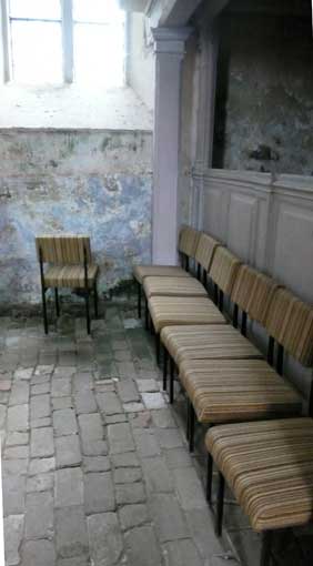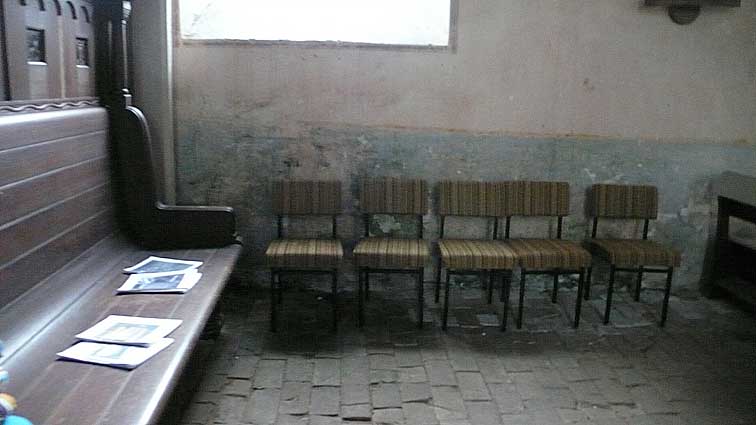 in der Kirche wohin sie kommen Musik zu machen im Stehen und heimlich zu singen stehen 6 gähnend leere Stühle vor dem Altar, einmal im Monat zu besetzen.