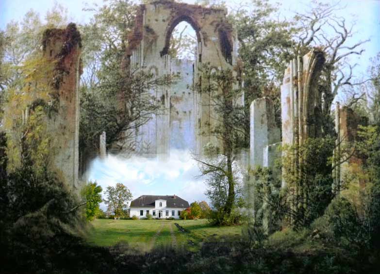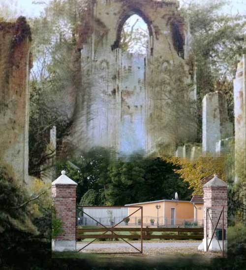 Die Bügermeister-Achse Kulturhaus-Kirche- Plattenbauten ist naturgemäss keine Alternative zu dem historischen Befund und Kern des Dorfes mit Ihren Wegen dahin. Allein von der Kirche bis zu den Plattenbauten -als Endpunkte der Geraden am Friedhof vorbei- enthält zwei tote Häuser (leer mit eingeschlagenen Fenstern) und die Betonplatten-Müllhalde des Kaphofs wurde privat von hier versucht zu kultivieren. Es läuft nicht gut. Die Zeit der LPG hat das Dorf aus vorher 3 Gütern schwer kontaminiert, die Medrow'er Vor-Herrschaft heute gäbe ihm den Rest.