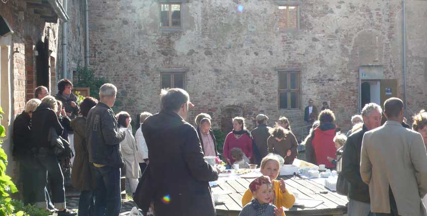 Nur eine halbe Stunde entfernt und alles ist gut. Steine und Wände und Bäume und Gärten und Stoffe und Gesichter, die Räume und das Licht, nur 30 Minuten, das Alte und das Neue in eins. Menschen, die das wollen und können und wissen, aus dem gemacht, selbst, und es geht. Die Kinder aber, noch aus den Höllen der Fleischgifte und der Trinkersatzfallen contaminiert, haben noch eine Chance.