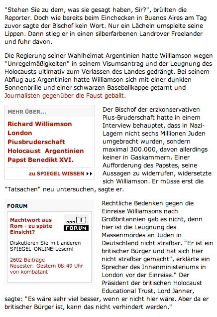 Susan Sontag war auch hier gegen dieses Holocaust-Gebot als Gesetz mit Länder-übergreifender Verbindlichkeit. Und sie war sicher weder dumm noch gegen ihre Geschichte. Vielleicht denkt doch einmal jemand darüber nach, von denen, die da wohlfeil Punkte der Korrektheit sammelnd so laut nach kreuziget ihn schreien, warum sie das sagte. Sie hatte auch Feinde, in Amerika und in ihrem Stamme. Es waren nicht die besten. Die Grals Hüter aber des Holocaust tun ihrer Sache keinen Gefallen, wenn sie eine der klügsten und vornehmsten Botinnen in so wichtiger Frage des Erinnerns nicht auf ihrer Seite wissen..