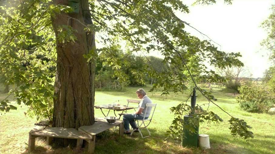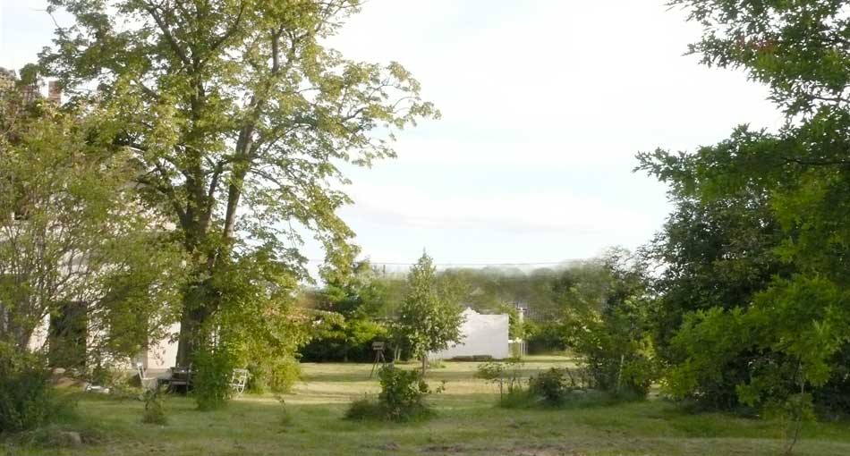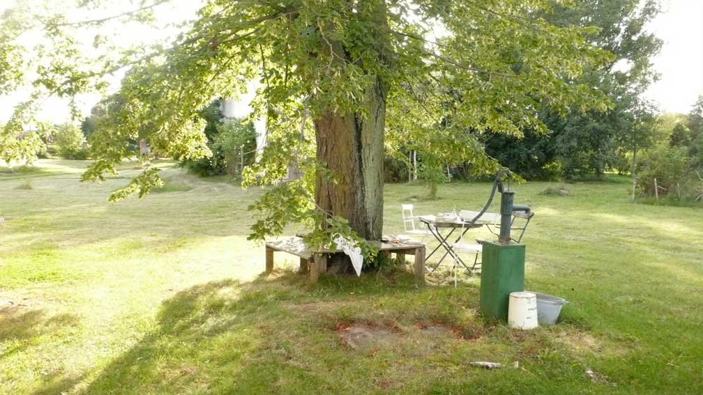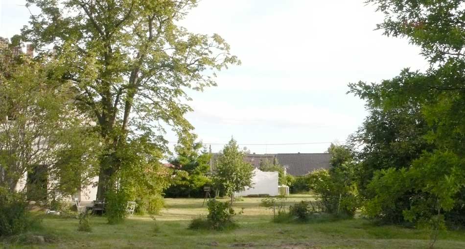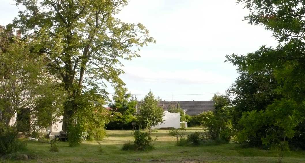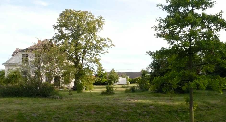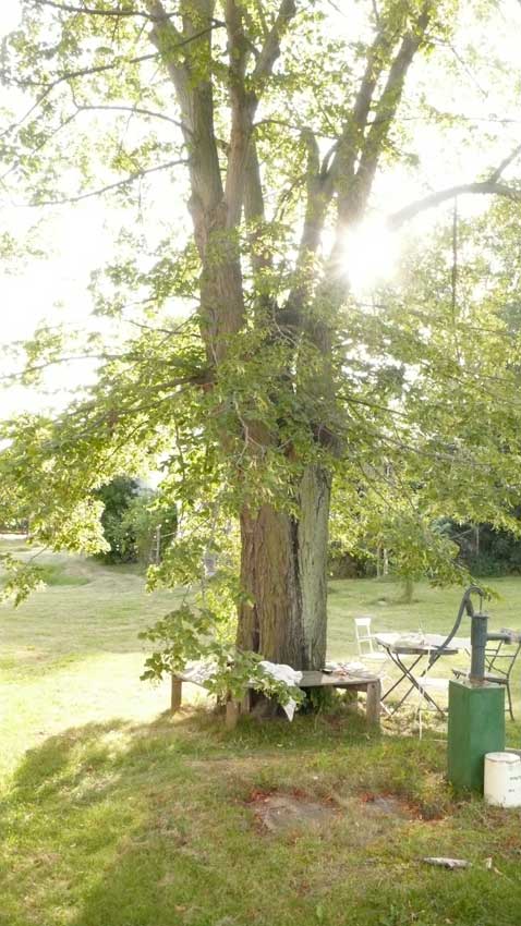 Aus kleinen Löchern live bis Paris als Botschaft: das Pflanzen der neuen Linden! wie Zeichen und alle da- 2003 ist das nichts?? und jetzt wieder in vollem Grün vor weisser Wand aus eigenem Tun und des Lebens Ernte - umsonst?