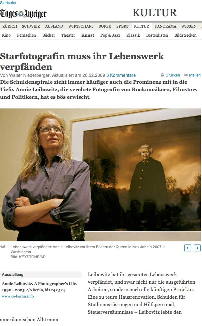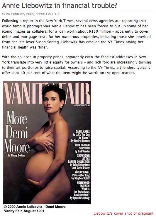 In other words, according to loan documents filed with the city, one of the world's most successful photographers essentially pawned every snap of the shutter she had made or will make until the loans are paid off.