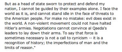 Obama ist gewählt worden, weil er reden wollte, statt schiessen oder foltern und betrügen. Weil er all das ändern (change) wollte.