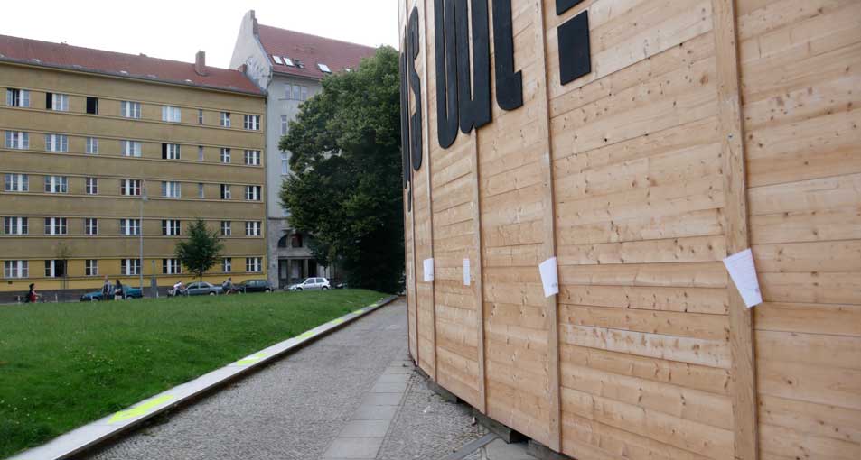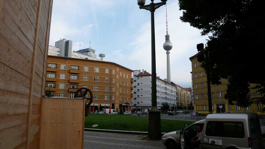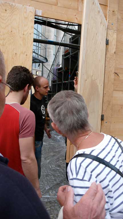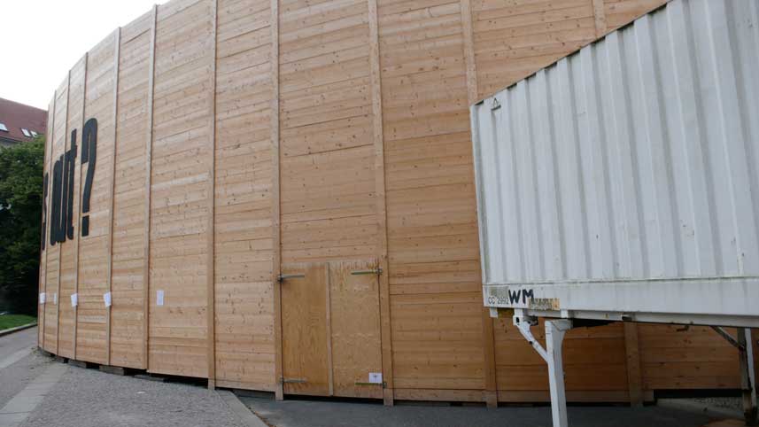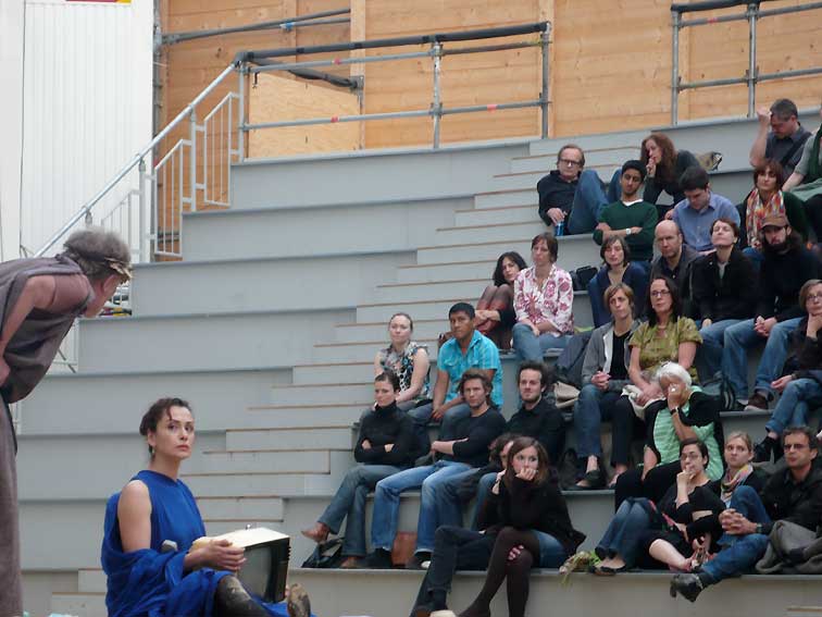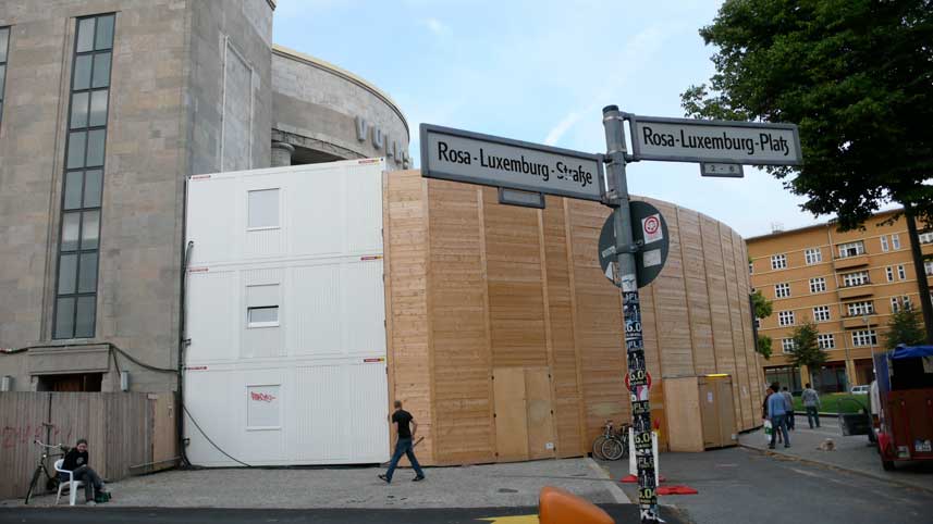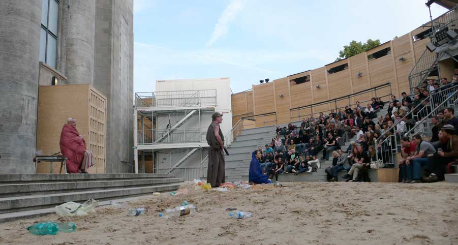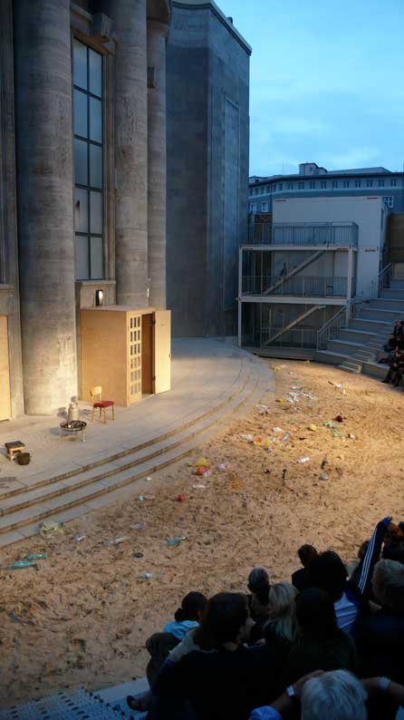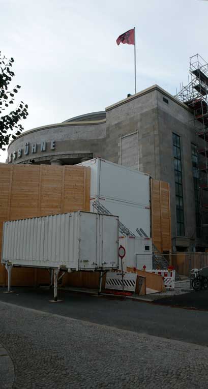 Die VB Ost also mit dem Sommer-Theater aus Brettern nun in Gestalt eines griechischen Rund vor der Fassade aus Stein hochauf in mitten der Häuser dieses Viertels..