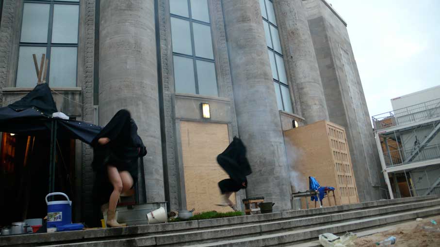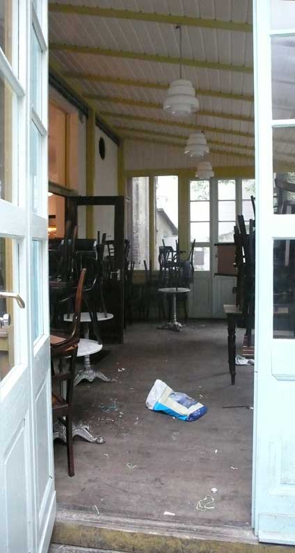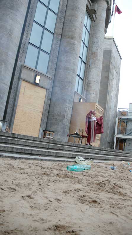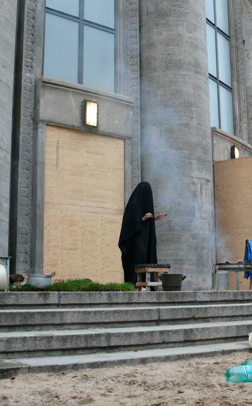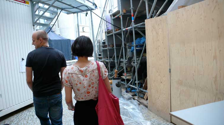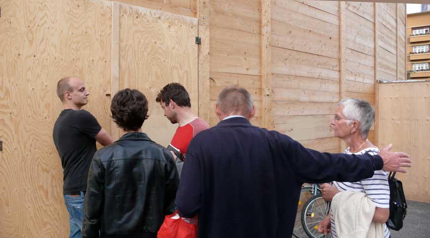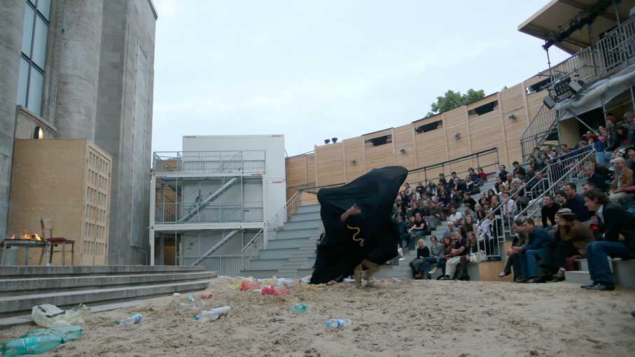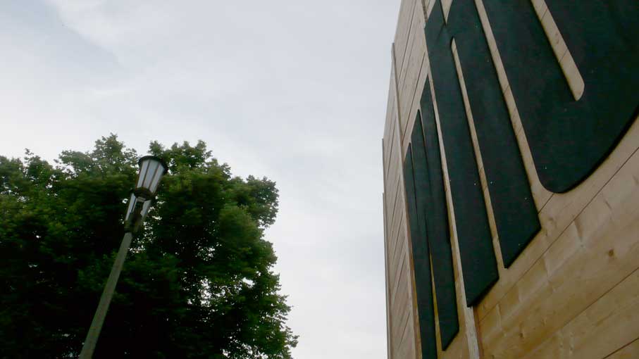 Die VB Ost also mit dem Sommer-Theater aus Brettern nun in Gestalt eines griechischen Rund vor der Fassade aus Stein hochauf in mitten der Häuser dieses Viertels..