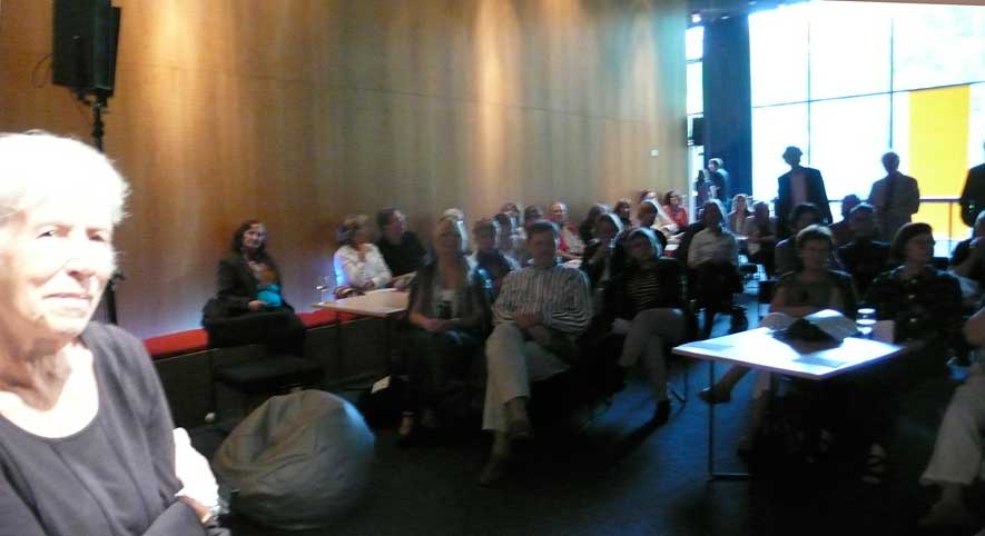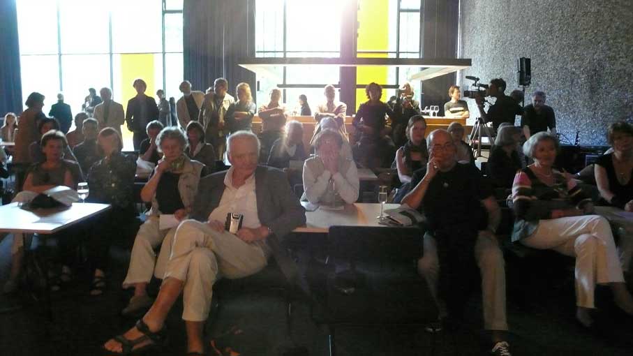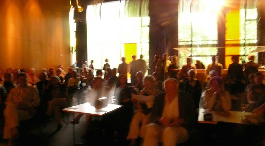 Das Licht der Lampen kommt erst zum Applaus. Die Helligkeit des grauen Abends verführte diese Kunst des Lichts nicht vorher für den text einzusetzen.