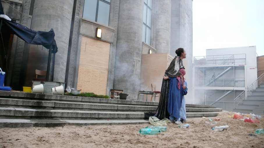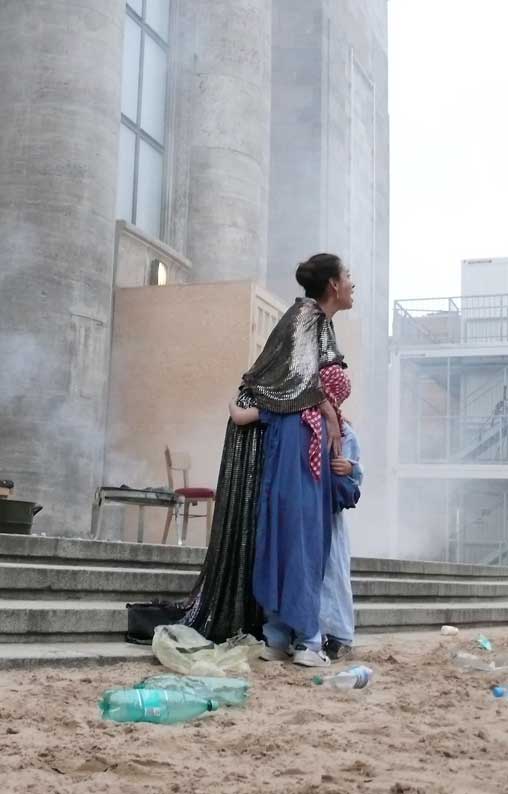 Noch mal Die Volksbühne West bei ihrem Sommerfest mit Nele Hertling vor dem Dialog.