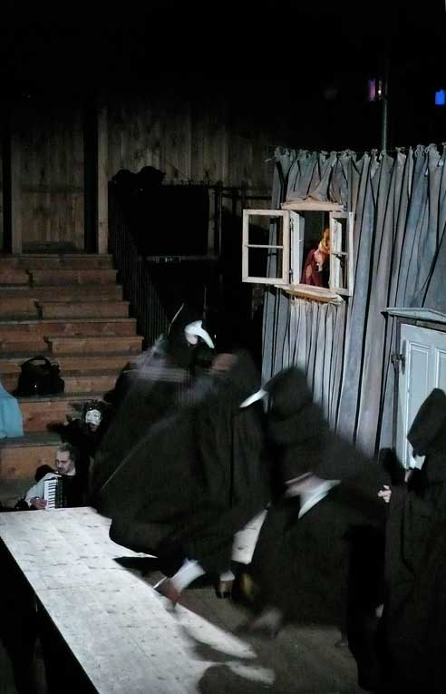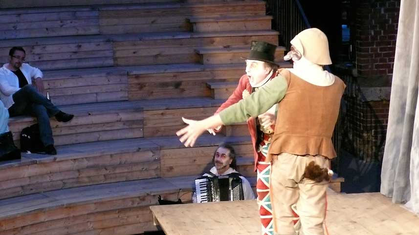 Die italienische Truppe als Gäste spielen im Stil der Comedia del arte den Moliere perfekt mit Musik und schönstem Temperament der Bewegungen. Was nachdenklich macht ist, wie sehr das Theater den Bezug braucht der Gegenwart, aus der es entstand. Nur man muss es können, wenn alte Vorlagen dienen, diese Gegenwart hineinzubekommen-bis zum Verbot. Zur Zeit der Comedia del arte Erfindungen wurde sie von Napoleon verboten, weil sie zu gefährlich waren.