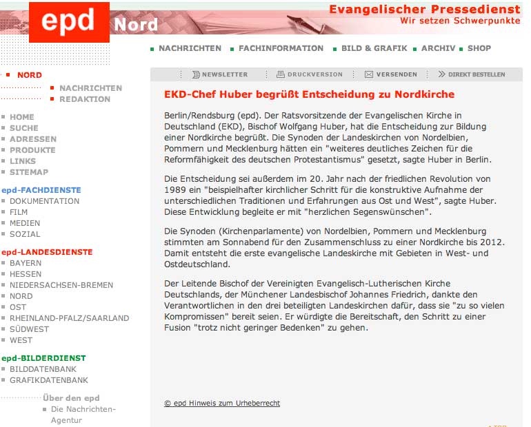 Die Meldung, dass sich die drei Kirchen - Provinzen quer von Ost nach West im Norden zusammengeschlossen haben, von Schleswig Holstein bis Pommern mit Sitz in Mecklendburg, ist dort wo der Spiegel seine Nachrichten zeigt und kommentiert und bei DPA seit gestern keine Nachricht wert. Die Kirchen hier in Vorpommern wurden von der Elbe her aus dem Anhaltinischen und Branenburgschen gegründet Havelberg, vor 800 Jahren. So alt wie Ostpreussen war. Also in Süd-Nordrichtung. Diese neue Konstellation wäre daher durchaus Meldung und Kommenatre wert, wenn noch relevant, im Vergleich zu den Demonstrationen um das Geld. Die Pommersche Kirche als selbstständige Einheit hat aufgehört zu sein. Im Grossen wie im Kleinen.