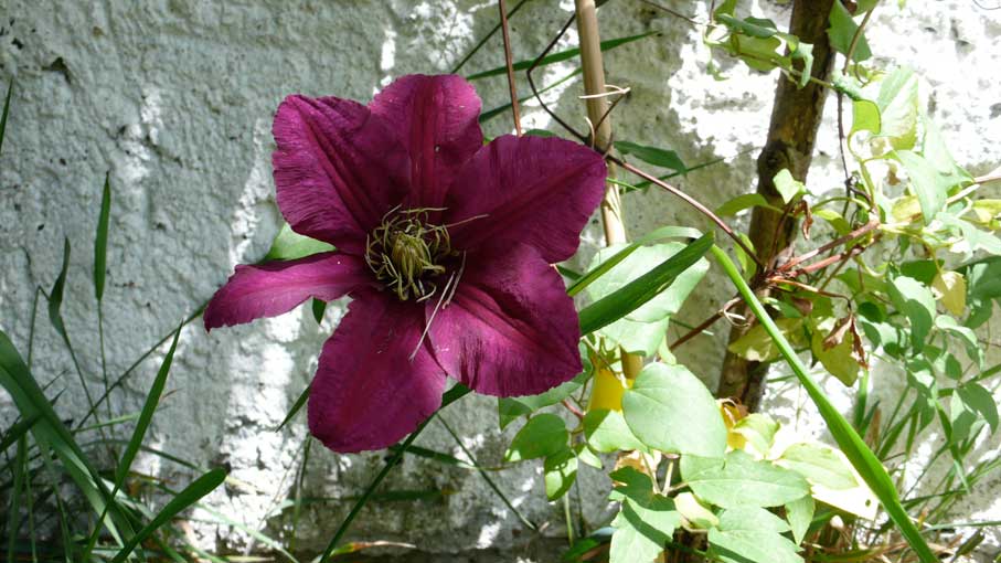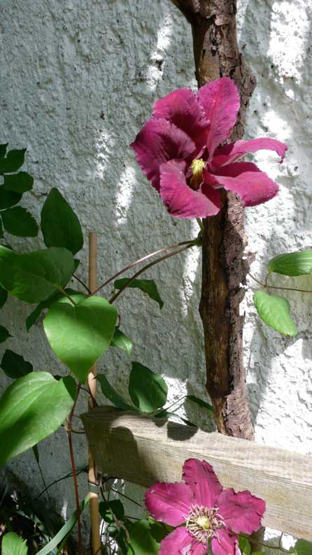 Die neu nach Ostern gepflanzten Clematis vor Pfingsten schon als blühende