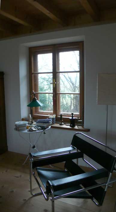 hier das Stehpult gleich zu Beginn und später als Küche geignet wie die Toilette