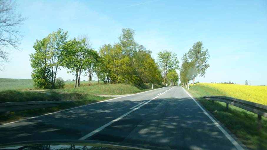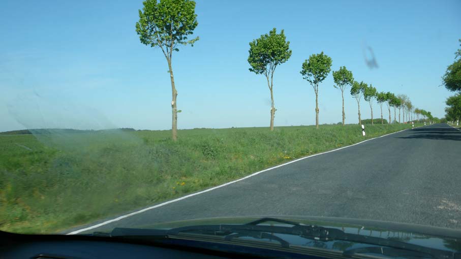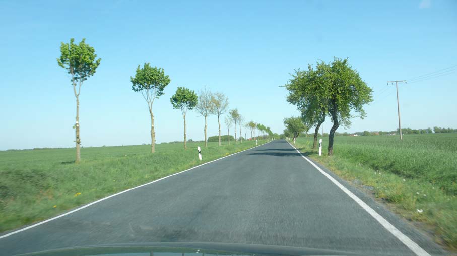 an der Strasse das, was seit Jahrtausenden Bäume waren. Mit 5 Meter Abstand, damit sie die Autos nicht stören, als moderne Alle und dem Radfahrern zugeordnet darunter.