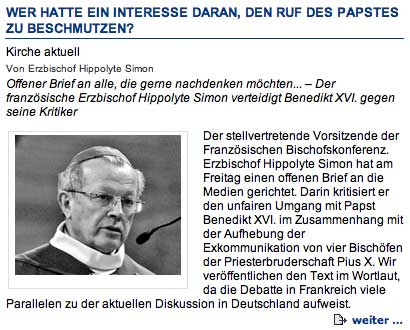 Erzbischof Hippolyte Simon verteidigt Benedikt XVI. gegen seine Kritiker