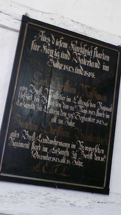 Gefallenengedenken seit der Volksheere Napoleons und seiner preussischen Gegner in allen Kirchen zu gedenken, alle gleich, in allen Kirchen die Tafeln seitdem.