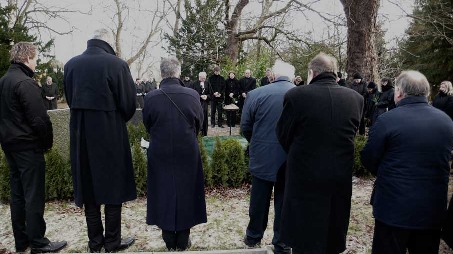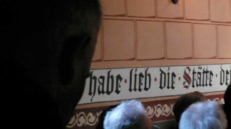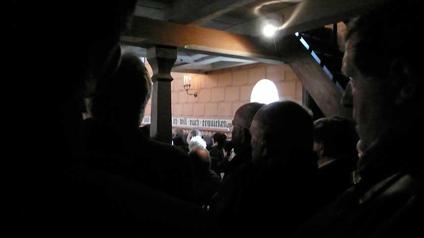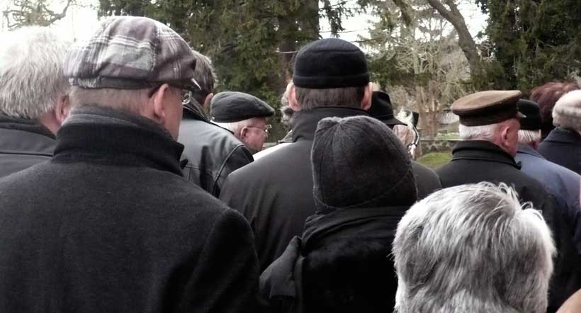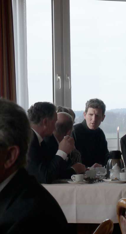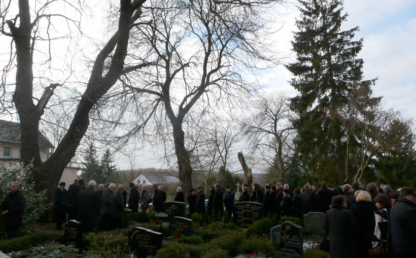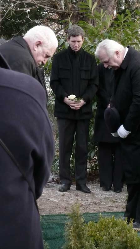 Sigi Kaiser, der treue Trinker vor dem Herren, ihm auf seine Weise die "letzte Ehrung" gebend mit dem zusammen er in der Schule gesessen, gerade dort rechts vor 6o Jahren.