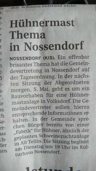 Eine Abmachung mit Unternehmen Rosemeier/Beerbaum-Tietböhl diese Kuturachse auch zukünftig in Nossendorf als mögliches Ziel für ausgewählte Gäste ihrer Kutschen-Touren zu machen, setzt voraus, dass diese Achse erhalten bleibt. Eine Achse zwischen Haus S. als Webstation live ( d. h. Film und ländliche Kultur als Auftrag) und der Kirche in Restauro. In einer Achse, die die Passage auch grösserer Gruppen ohne Behinderungen erlaubt.