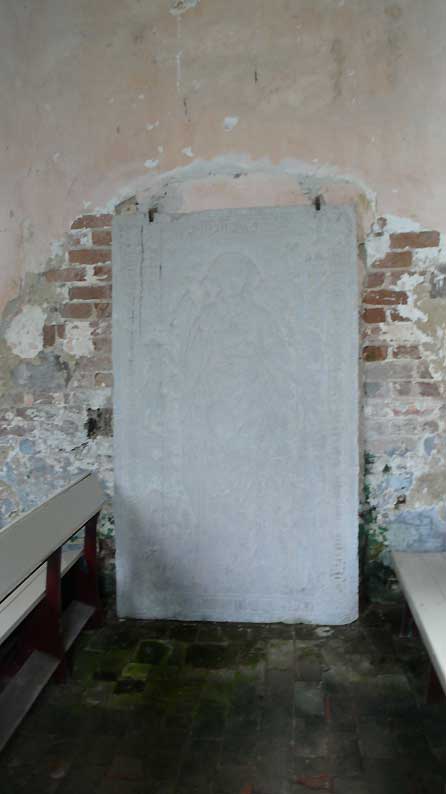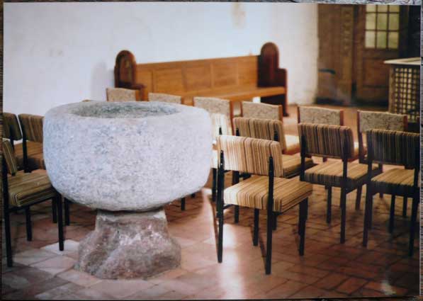 die letzten Spuren gottloser Zeit in der Nossendorfer Kirche direkt vor dem Altar um den alten Taufstein, den auswärtigen Besuchern schmerzhafte Anschauung.