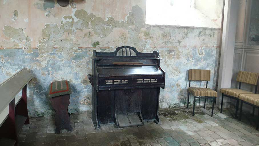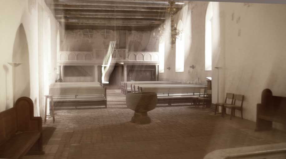 So musste ich das Bild zum Antrag bei der Kressnerstiftung für das Geld zur weiteren Wiederhesrtellung der Kirche mit digitalem Photoshop die Stühle entfernen, um dises Bild vorzulegen, um danach die Kirche in historischer Fassung zu versprechen. Sorgende Liebe zum Gehäuse vortäuschen.