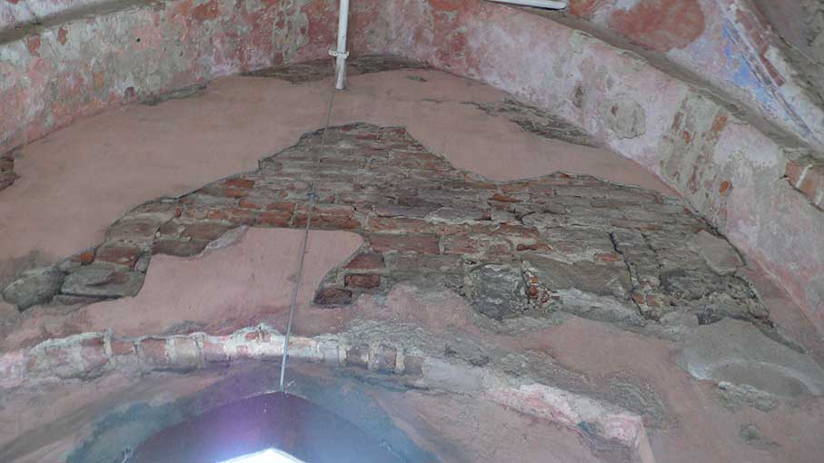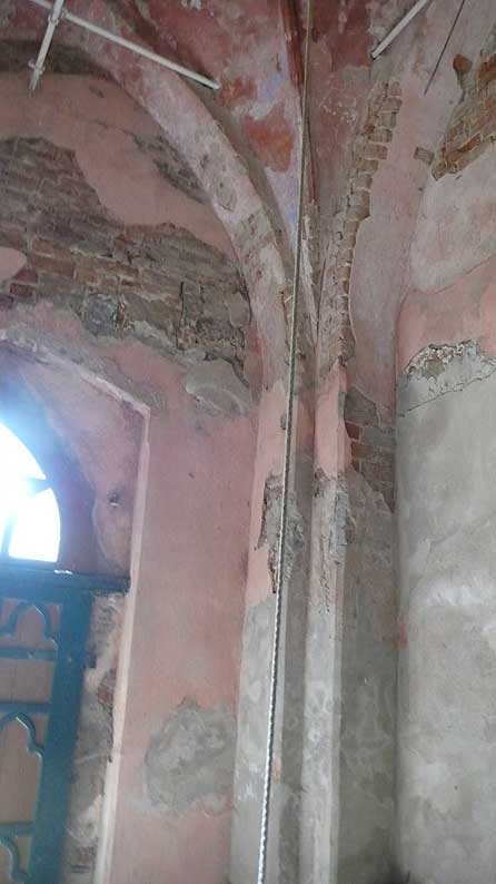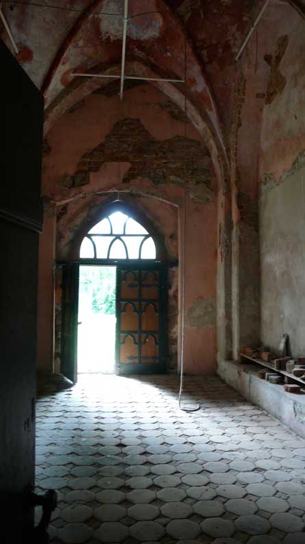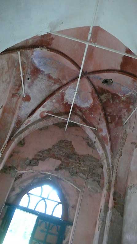 Nach der Entfernung des DDR - Vorhangs vor dem hinteren Teil der Kirche wird sichtbar, was noch innen zu tun ist.