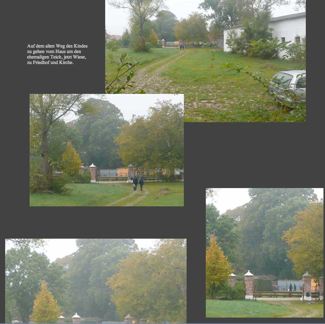 Dieser kleine Durchlass über den Hof von hier, durchs Tor, über den zugeschütteten ehemaligen Teich. Gerade darum geht es, um diese Achse, durch diese enge Stelle, dass wir da gehen müssen, zu den Gräbern und unserer Geschichte.