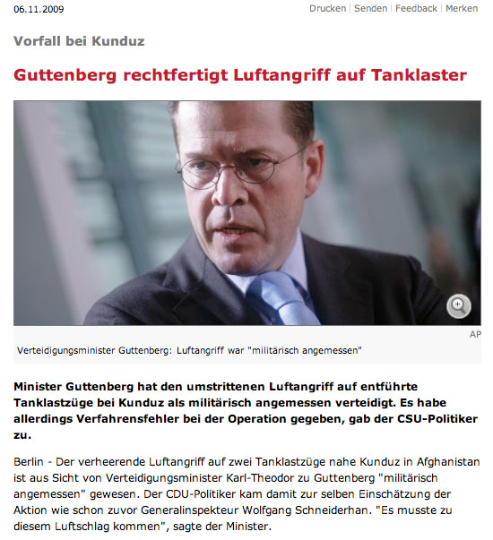 Der beliebteste Minister muss nun als Verteidigungsminister das unbeliebteste Thema verantworten. Alles, was hierzu sagen ist, Tragik der Demokraten. Diese eindeutige Mordaktion -als wissentliche und beabsichtigte Tötung von Unbeteiligten, trotz Warnung und ohne eigene Gefährdung, gegen aus- drückliche Befehle und Ermahnung- mit unserem Namen, darf nicht durchkommen.. Wenn wir etwas gelernt haben wollen, dann das.