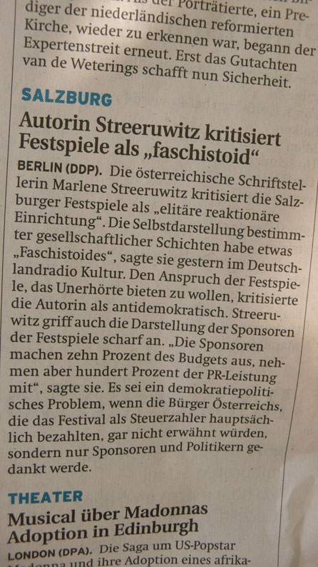 Von den Festspielplätzen längst ausgeschieden, von der Verkommenheit und Eitelkeit dessen, was dann als Kultur sich darstellt, spricht hier einer - die Wahheit.