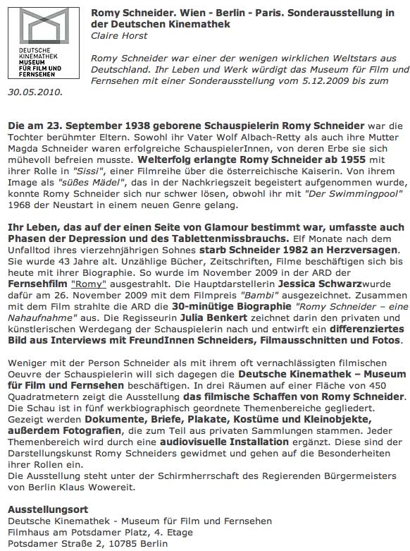 In Berlin gebit es jetzt eine Romy Schneider Ausstellung. Dazu lesen wir