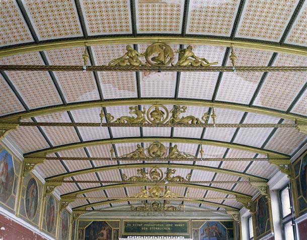 Ein Haus das im Kriege schwer gelitten und nun sorgfältig seine Wunden nicht verbergend eigene Form erhält aus der Geschichte davor und danach.Wie wir das kennen, Schön die alten Materialien zu ehren. Tausende, die kommen das zuehren.