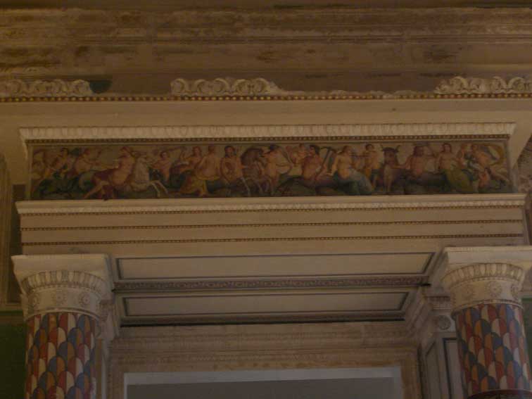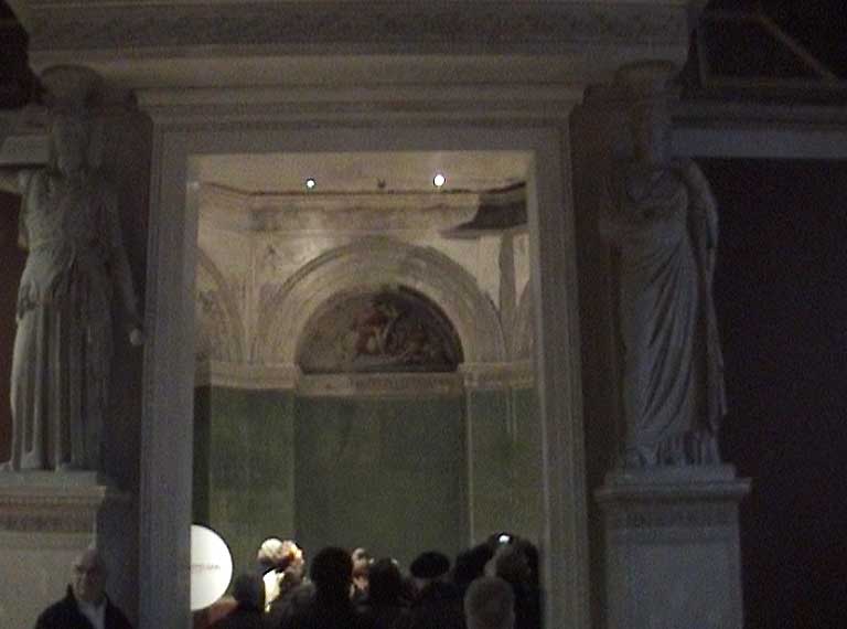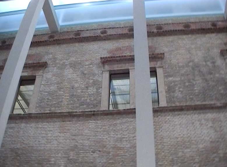 Es fällt auf, wie der alte Befund der Baureste sorgfältig erhalten und gezeigt wird und eingefügt ist neben den zu erneuernden Teilen.
