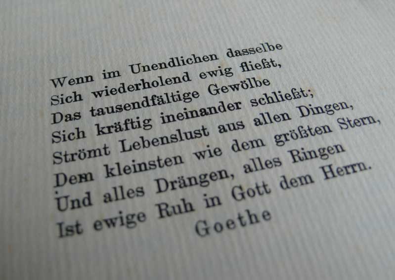 Das prägende Motto gleich vorne war das Mass. Dem jungen Goethe-Entdecker schon in N. oder doch wohl erst in R. -mitgekommen einzig- neben ersten Theatern und Filmen?