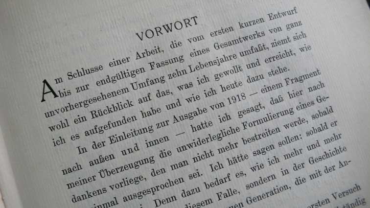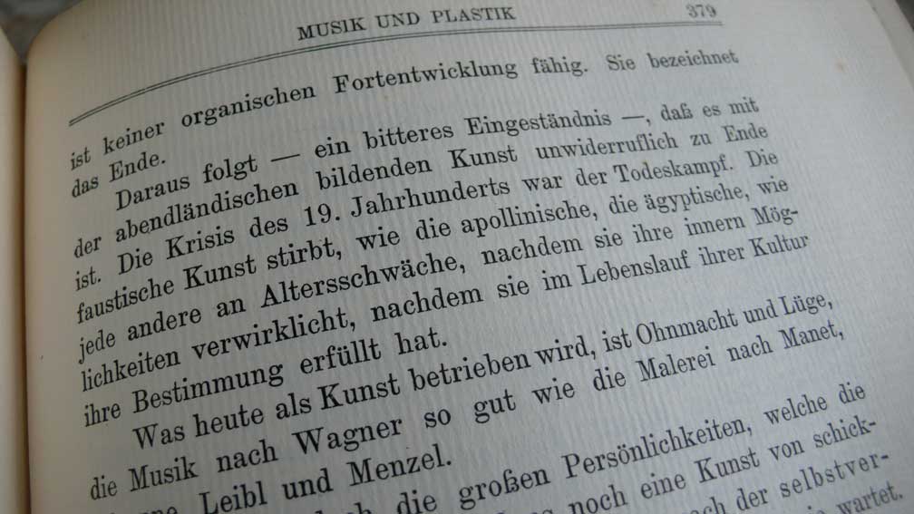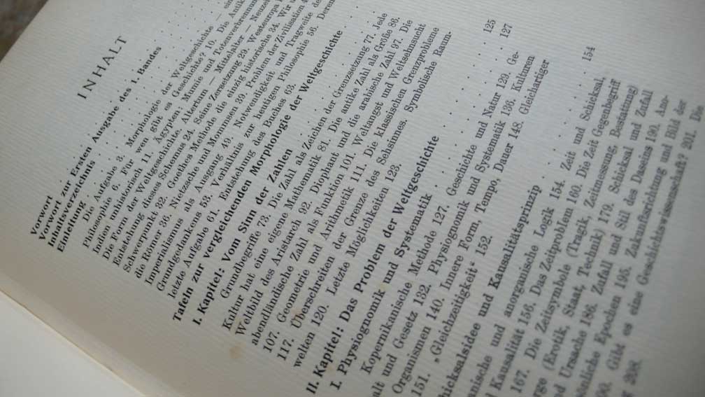 Erinnerungen der ersten Weltinterpretation begleiteten den späteren Weg bis ins Studium. Aber in frühen Jahren von besonderer Art. Das Buch war gleich bei seinem Erscheinen ein epochemacherner Hit, schon durch seinen Titel in bedürftiger Zeit. Die Hitler-Jahre und deren Ende in N. schienen das zu bestätigen.