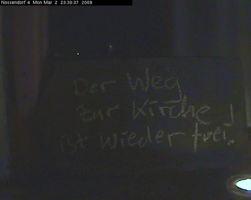 Sehr geehrte Frau Schubbe, von Herrn Rau erfahre ich, dass die am 10.11.08 zugesagten Schilder auf dem Weg zur Kirche jetzt endlich angebracht werden.