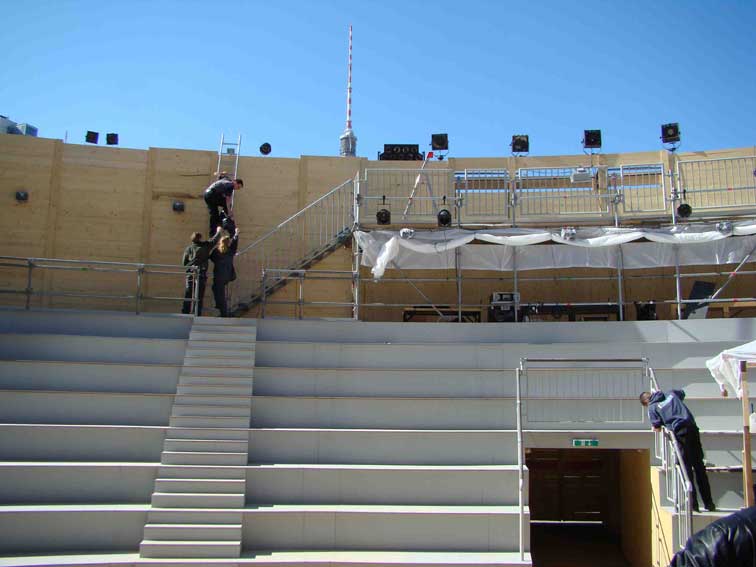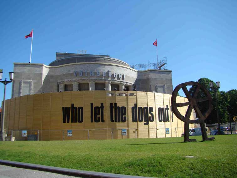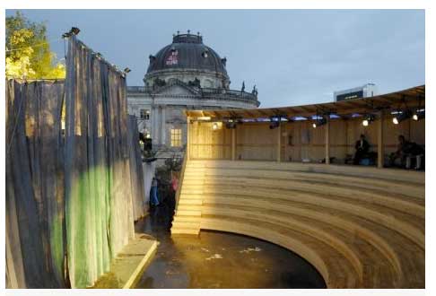 In Berlin die Volksbühne Sommer 2009 Vor der Tür. Gebaut von Bert Neumann.