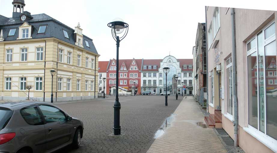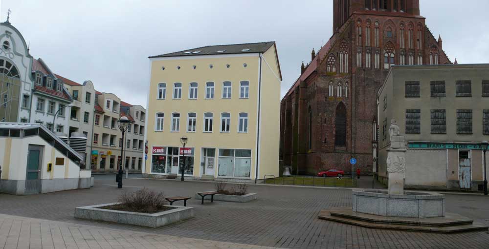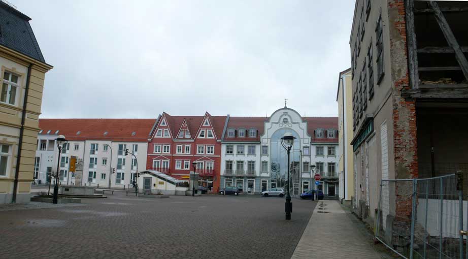 Im Norden versucht nun die Verwaltung der Plattenbauten nochmal alte Strukturen der Markthäuser zu schaffen. Das historische Rathaus in der Mitte wurde in einem ersten Willensakt des Neubeginns nach dem Abriss der DDR wieder mit äusserer Fassade gewagt.