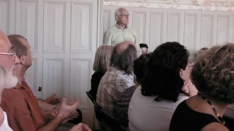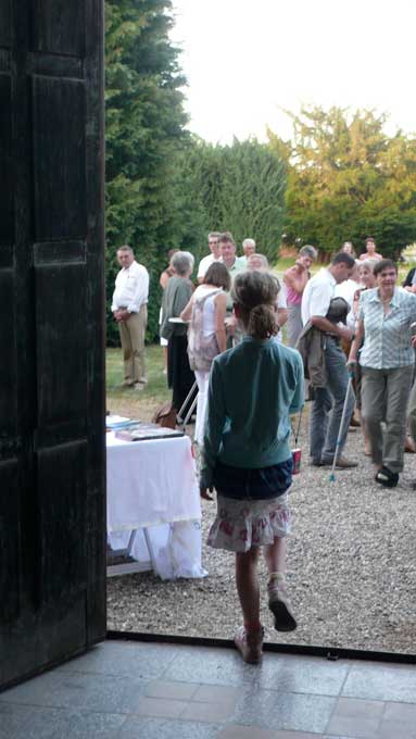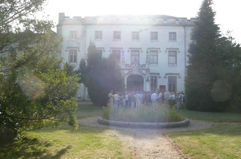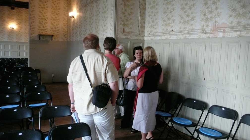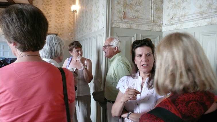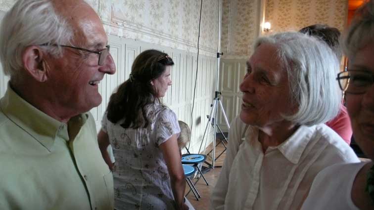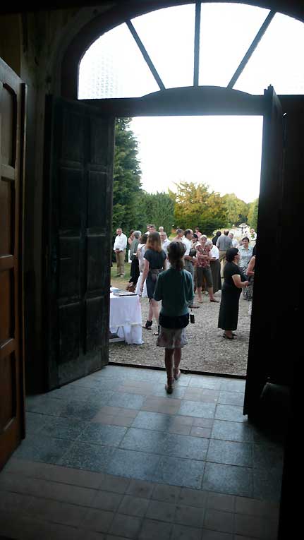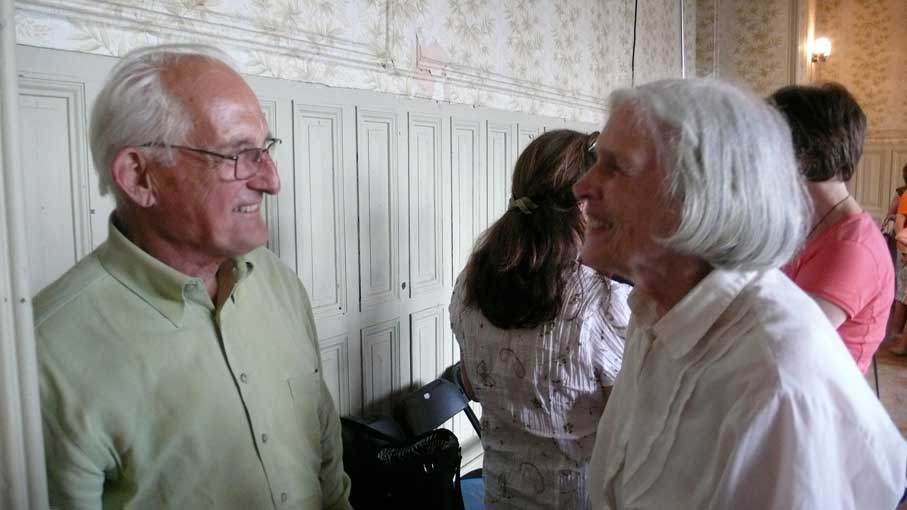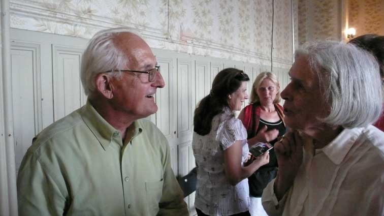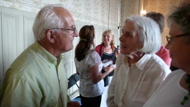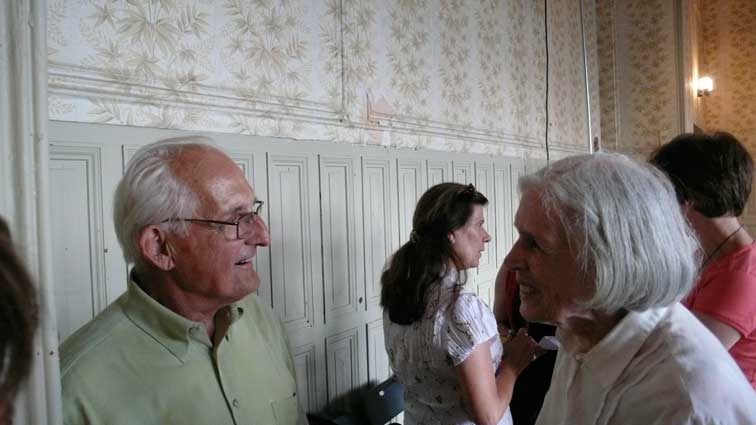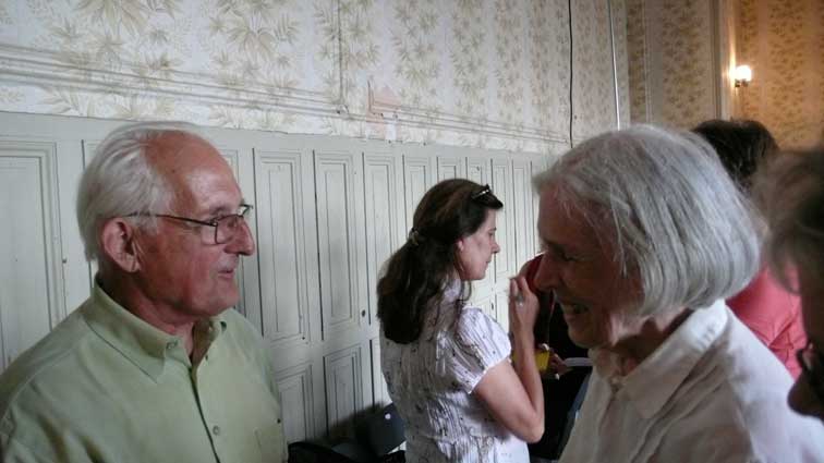 unter den des sonst geschlossenen Hauses anlässlich des Konzerts, der ehemalige Bewohner bis 1945(Links) Graf Grote nun aus den USA.
