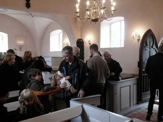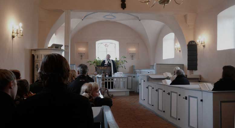 Einige hundert Kilometer, auch im Norden des Ostens, auch eine Kirche, klein und auch wieder, wo die Menschen im Mai nun sich wieder versammeln und zeigen wie das geht. Einer vorne von ihnen und unter ihnen und die anderen im Raum, singend die alten Lieder und hörend die alten Worte, Kinder und Grosse mitten im Grün.