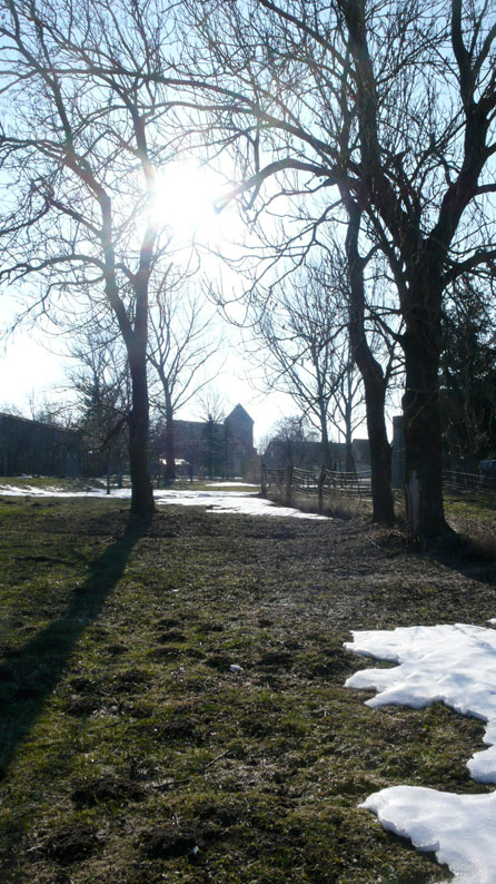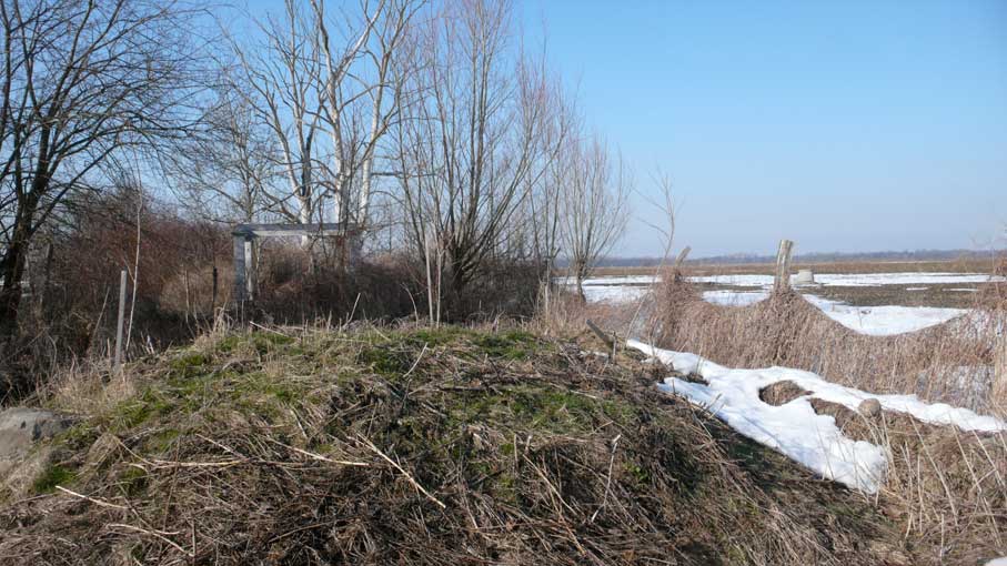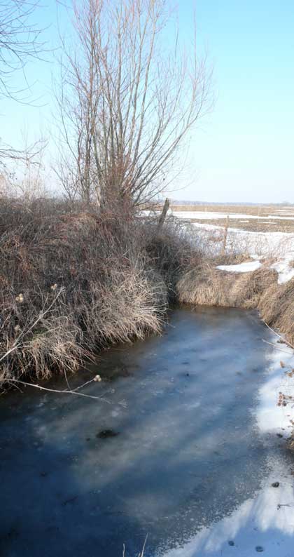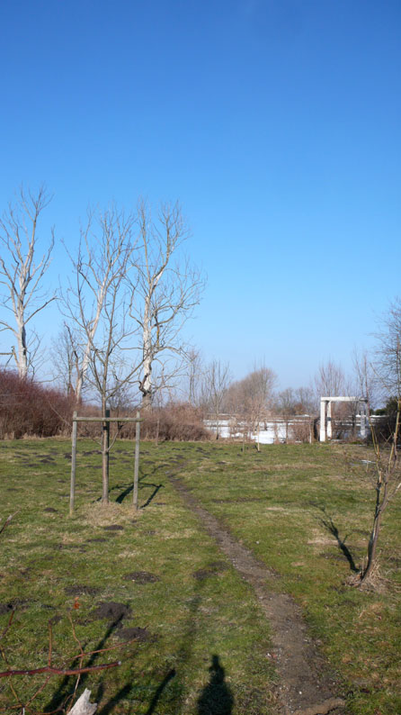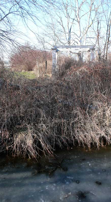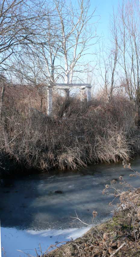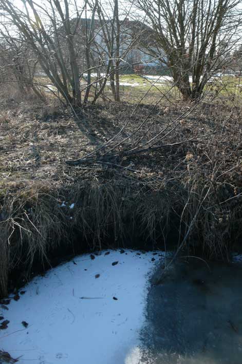 Hier aber wird es interessant- Das wieder ausgehobenen Wasserloch in der Ecke des Parks füllte sich wieder mit Wasser, im Sommer trocken wie immer, ind obwohlt der eiszeitliche Grabe durch unterirdische Verrohrung umgeleitet wurde und die Wasserstellte seit 10 000 Jahren zugemüllt wurde, sammelt sich das Wasser auch ohne Dränage, dass der Kellen wieder ohne Wasser ist