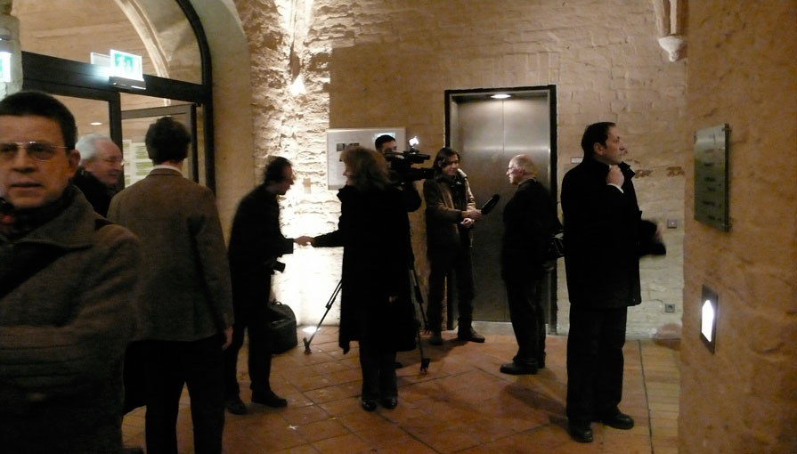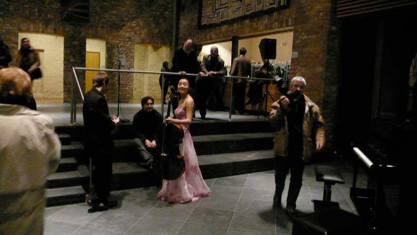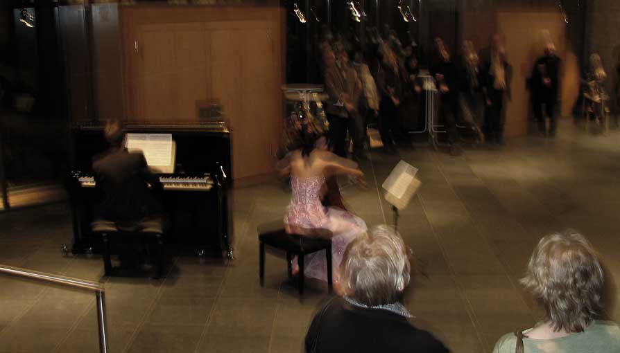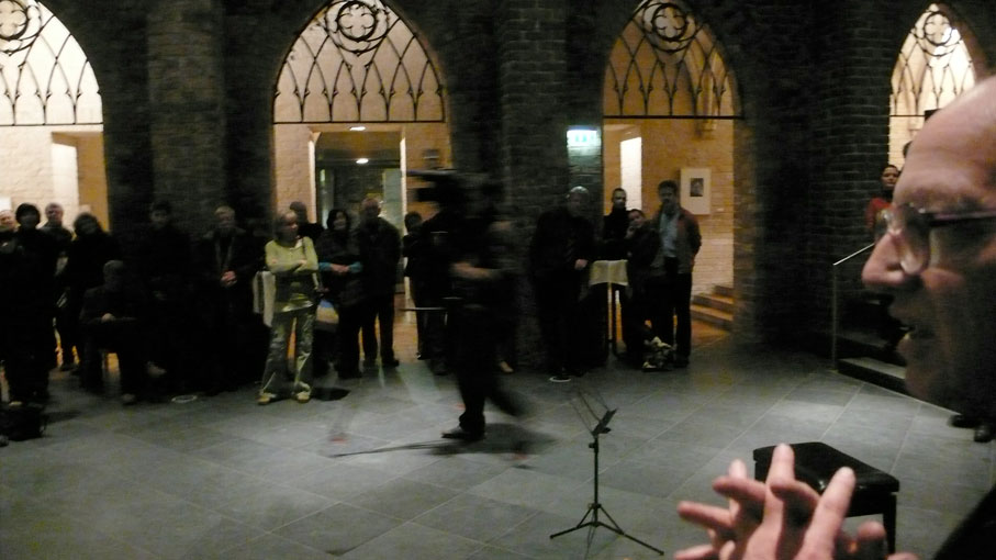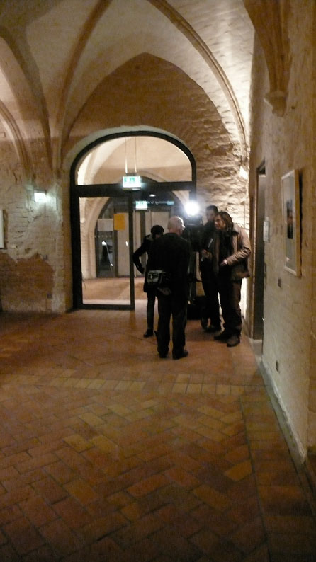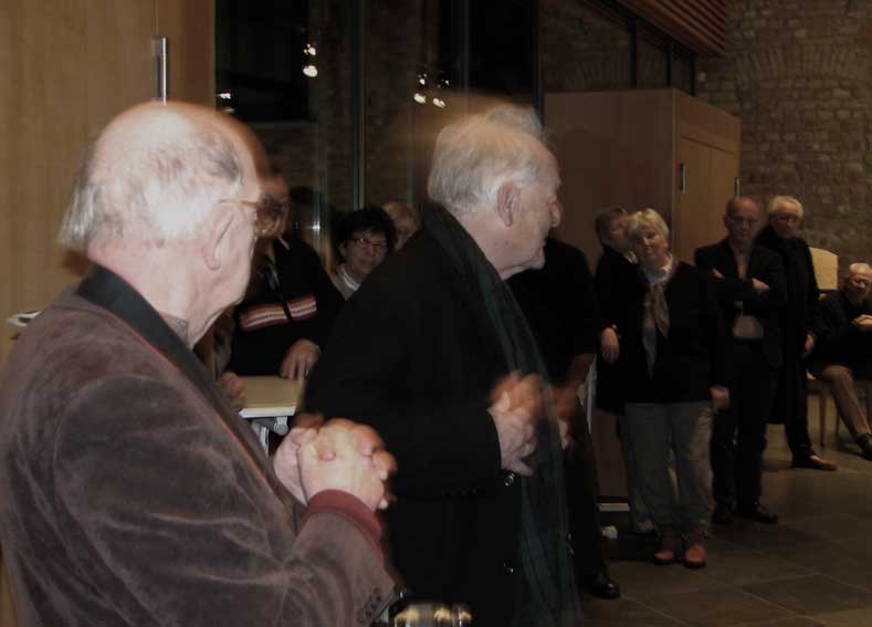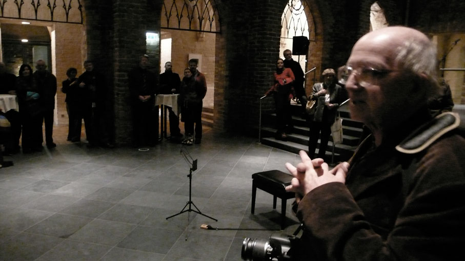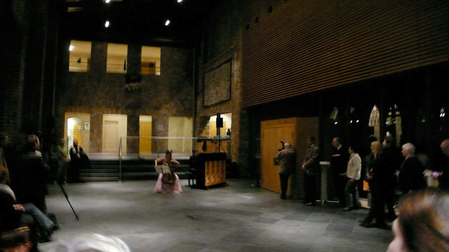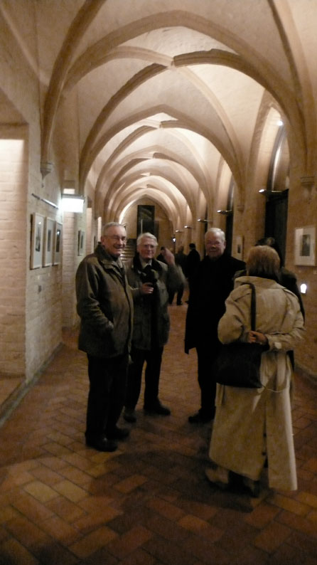 Zur Ausstellung von Hans Pölkow in Rostock mit den Gesichtern der Musik, zur Eröffnung in der Musikhochschule in den mittelalterlichen Mauern des Katharinenklosters gleich neben unserer St.Petri-Kirche und St. Nikolai jezt wieder mit Turm.