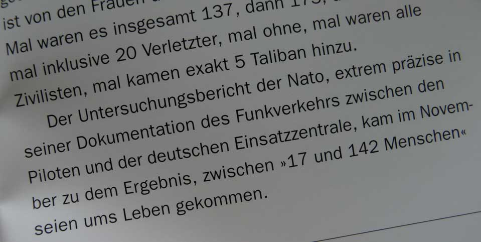 Only that's the difference, we can report on it. We know everything. See it, therefore, the responsibility is greater now. For all. This unpopular war and not only in Kunduz waged against the will of the citizens who are also voters.